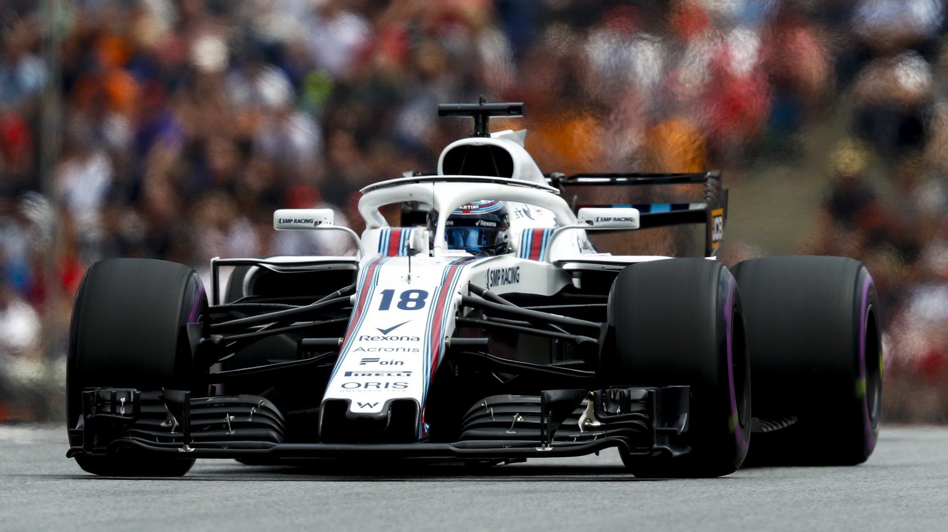 Lance Stroll s použitím DRS v kvalifikaci v Rakousku
