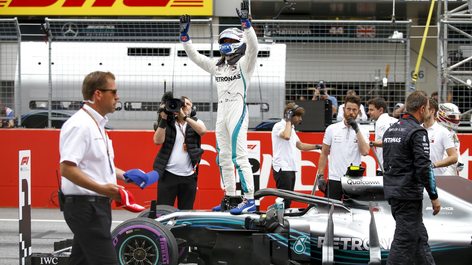 Valtteri Bottas se raduje z vítězství v kvalifikaci v Rakousku