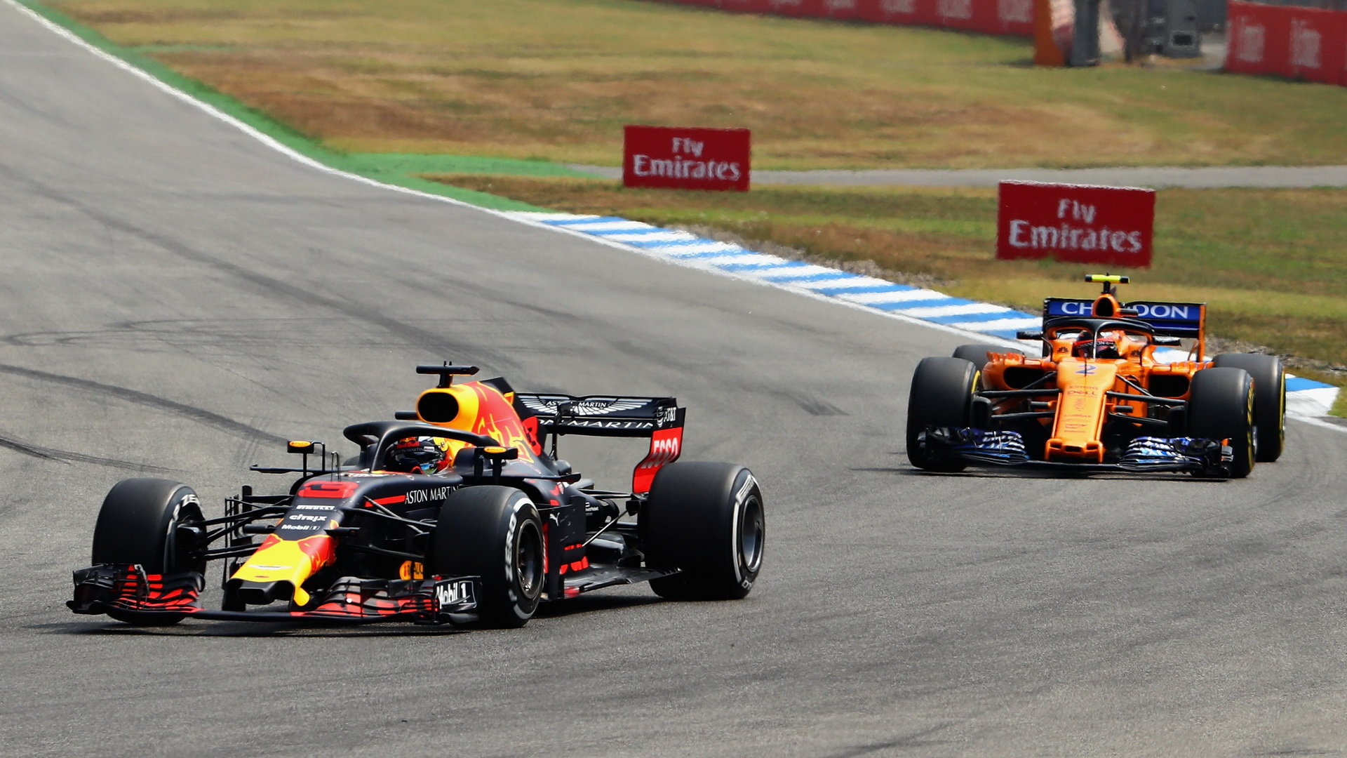 Daniel Ricciardo a Stoffel Vandoorne v závodě v Německu