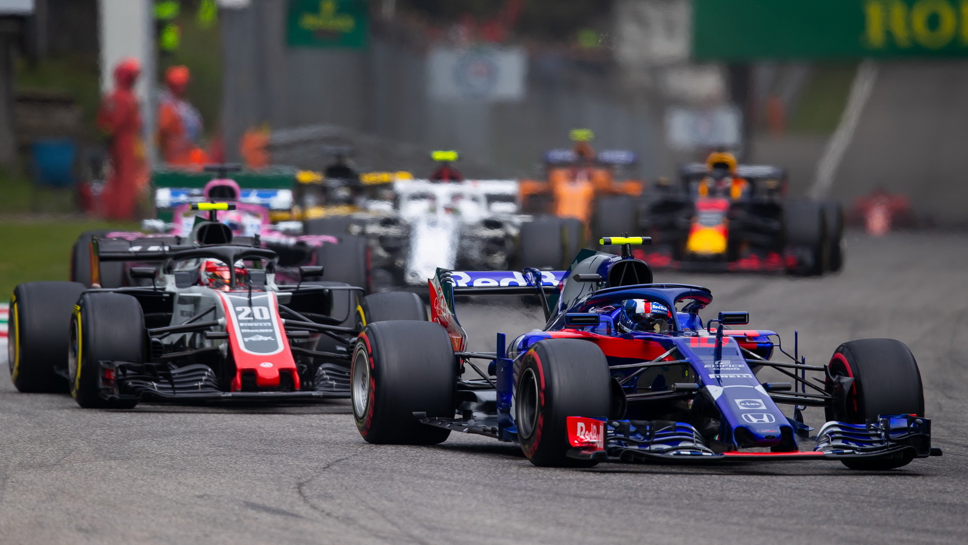 Pierre Gasly a Kevin Magnussen v závodě v Monze