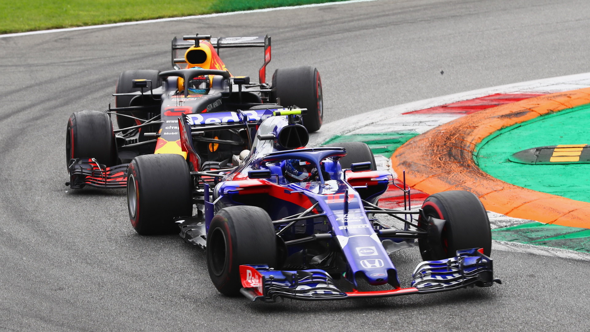 Pierre Gasly a Daniel Ricciardo v závodě v Monze