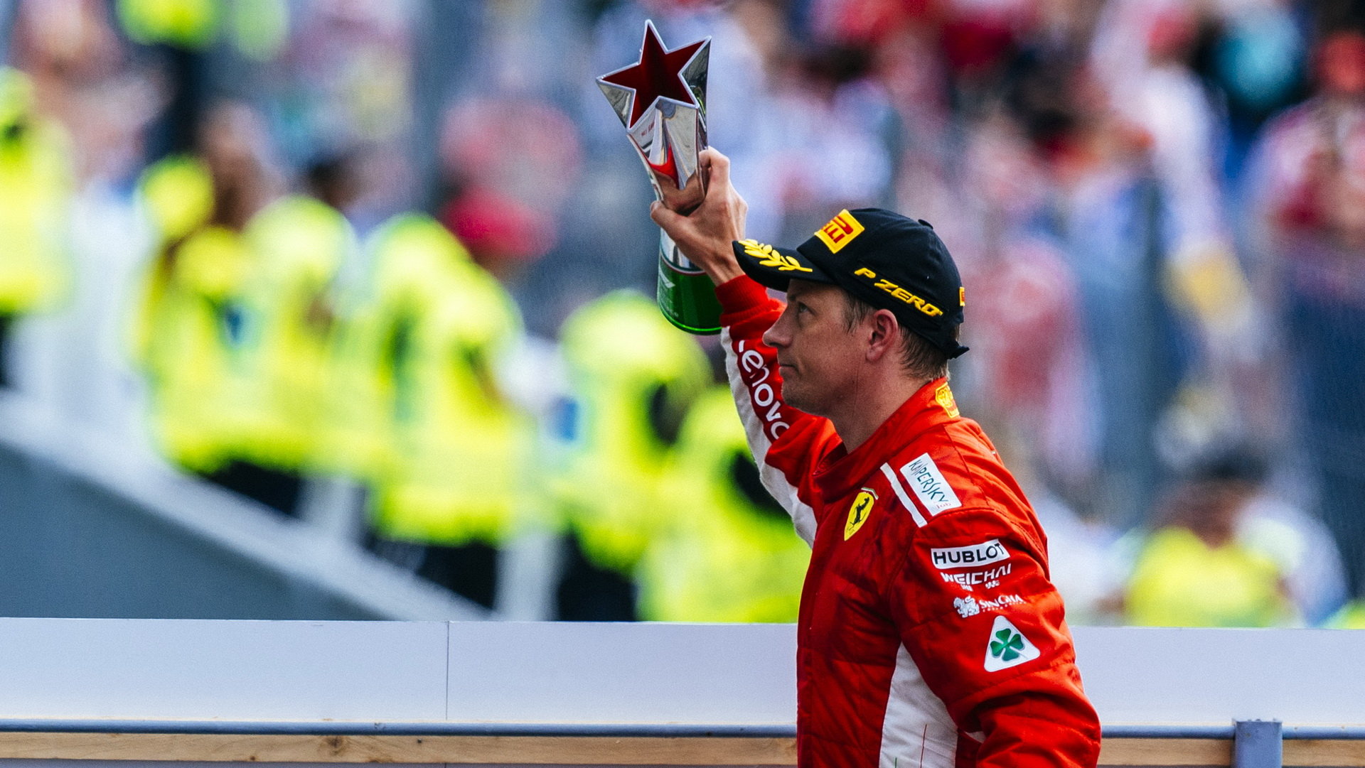 Kimi Räikkönen se svou trofejí po závodě v Monze