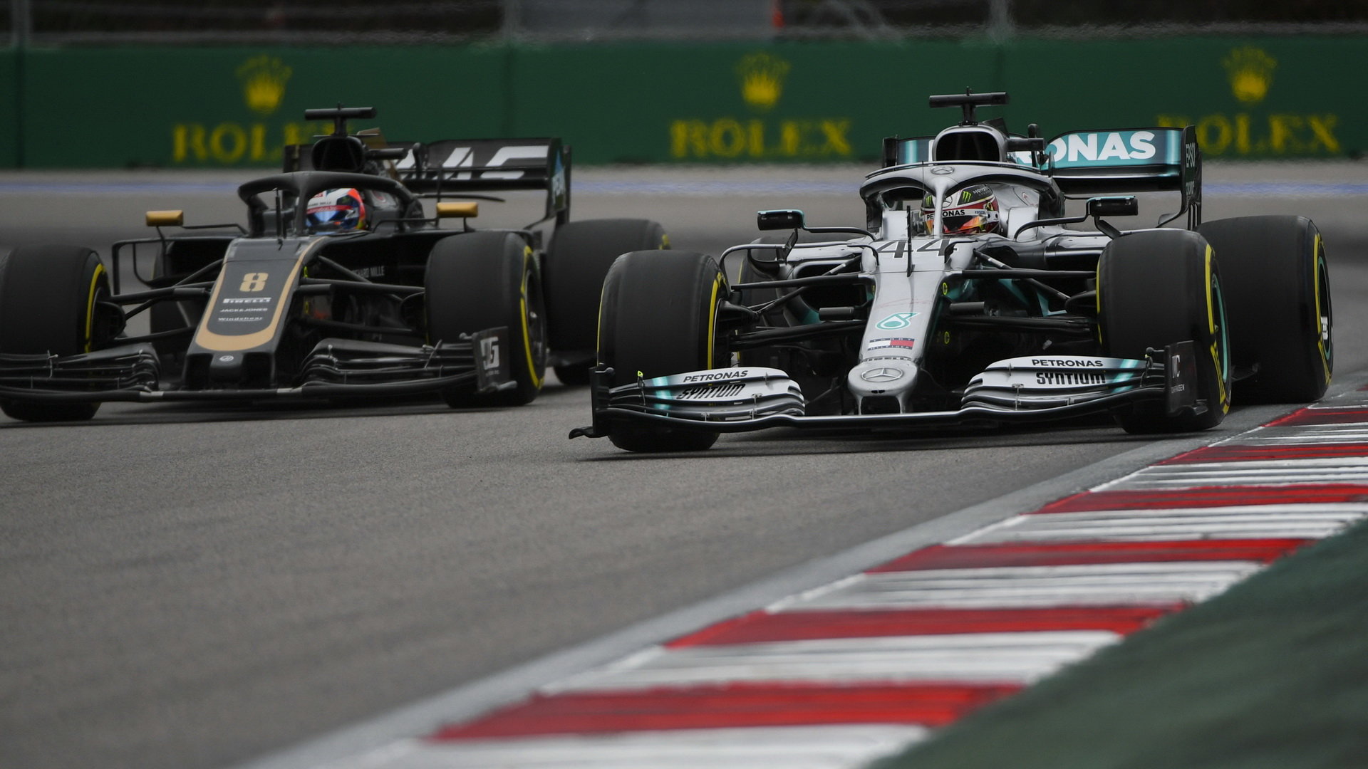 Lewis Hamilton a Roamin Grosjean v tréninku v Soči