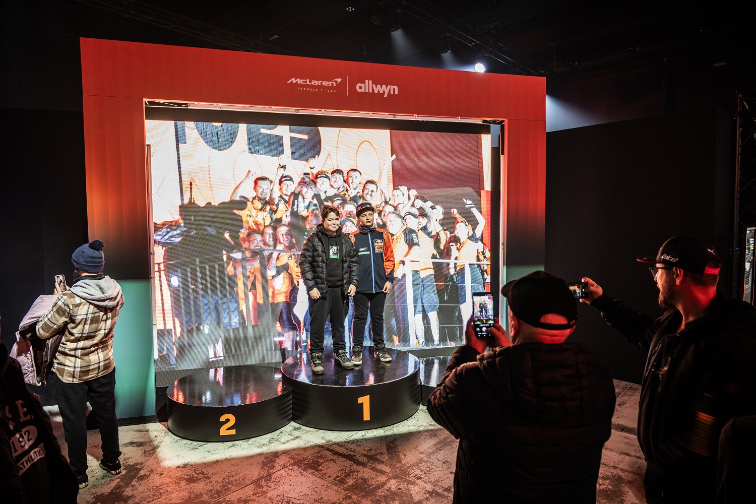 Česká loterijní společnost Allwyn a tým McLaren v pražských Holešovicích oslavily úspěšný rok